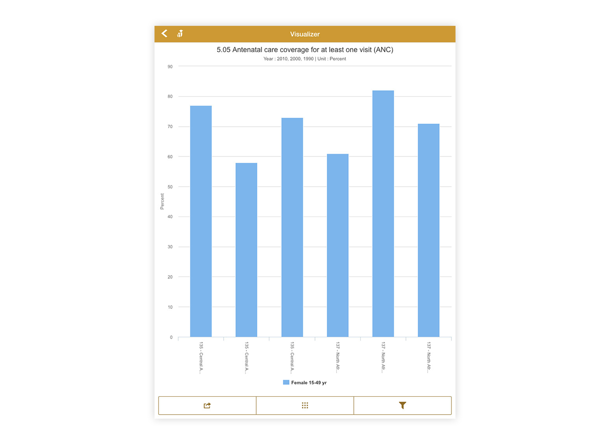OpenEMIS Visualizer enables the user to analyze and visualize indicator-based data by area, time period, and source in tables graphs, and maps on a mobile device. OpenEMIS Visualizer has a user friendly interface that allows decision makers, education planners, field workers NGO’s, and researchers to easily analyze data. With OpenEMIS Visualizer the user can save and share visualization objects that can be easily integrated to presentations, brochures and/or other materials. OpenEMIS Visualizer turns raw data into usable information.